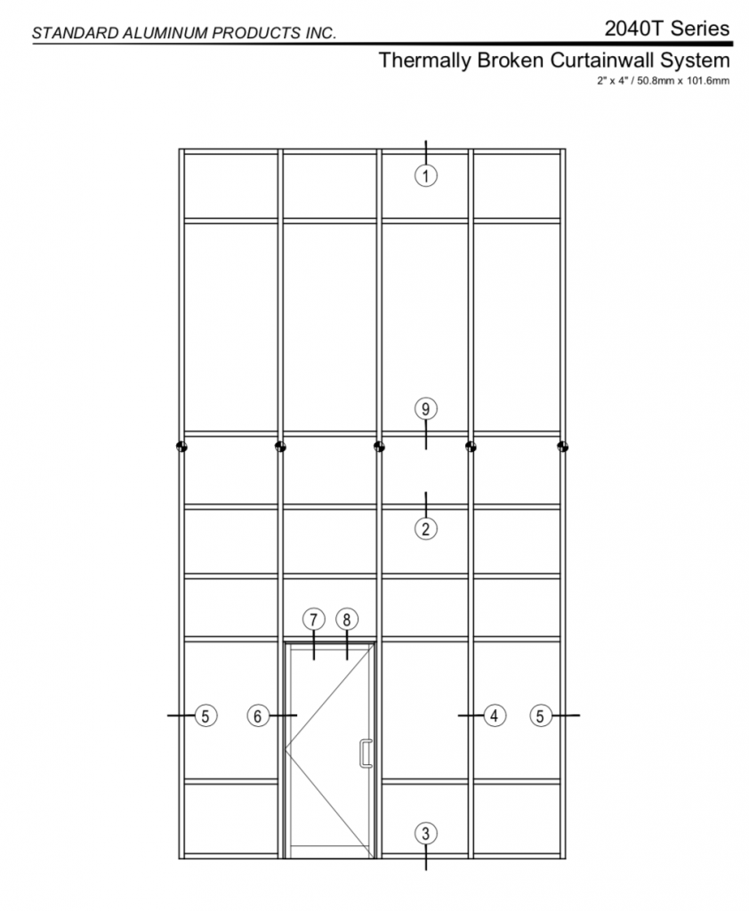 Structural design and performance shall be based on CSA Standard CAN3-S157, “Strength Design in Aluminum”, and a maximum deflection of L/175 of the span. The minimum requirements shall be based on the following ASTM test standards: E-283 Air Infiltration, E-331 Water Penetration, E-330 Structural Performance.