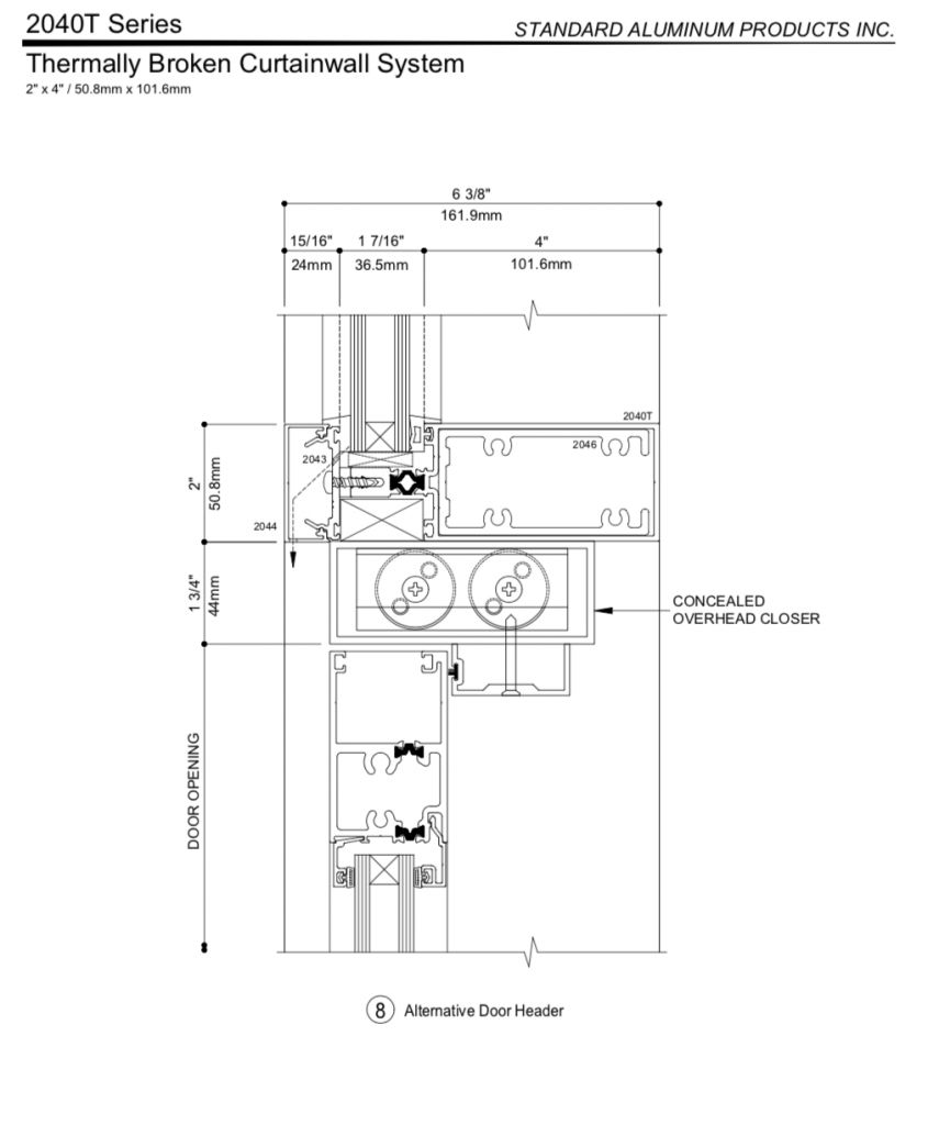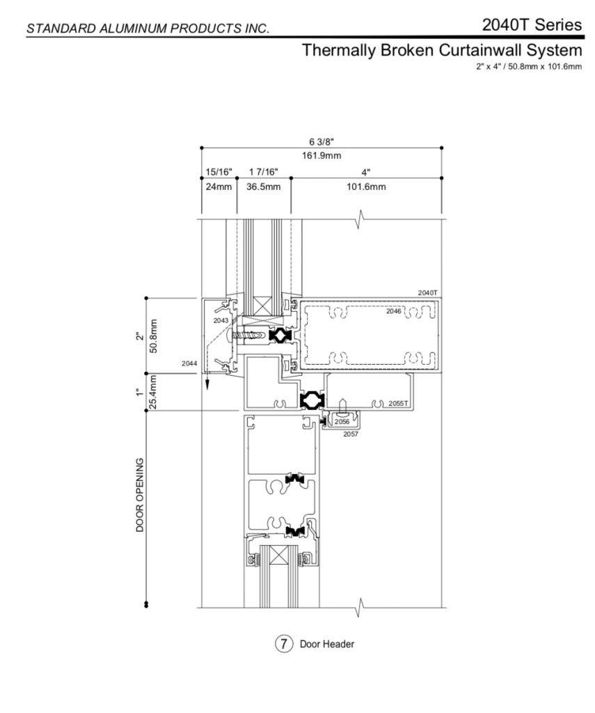Extrusions shall be AA 6063 T6 alloy and Temper – Fy =170 MPa (25 KSI) minimum. 6063 alloy provides high quality surface finish, good resistance to general corrosion, including resistance to stress corrosion cracking. Recommended assembly fasteners and anchoring bolts shall be sufficient strength and size made of corrosion-resistant and compatible material such as cadmium or zinc plated carbon steel or stainless steel. Direct contact of dissimilar metals can cause galvanic corrosion. Glazing gaskets shall be EPDM elastomeric extrusions designed for the system as required for conventional dry-dry outside glazing method.