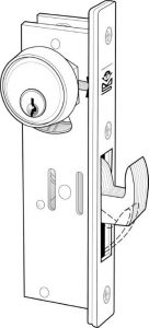 A single point mortise lock consisting of a latch and a 1″ throw deadbolt.