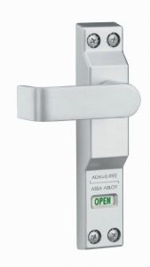 2. Handle-operated latch for exit only traffic just after closing.